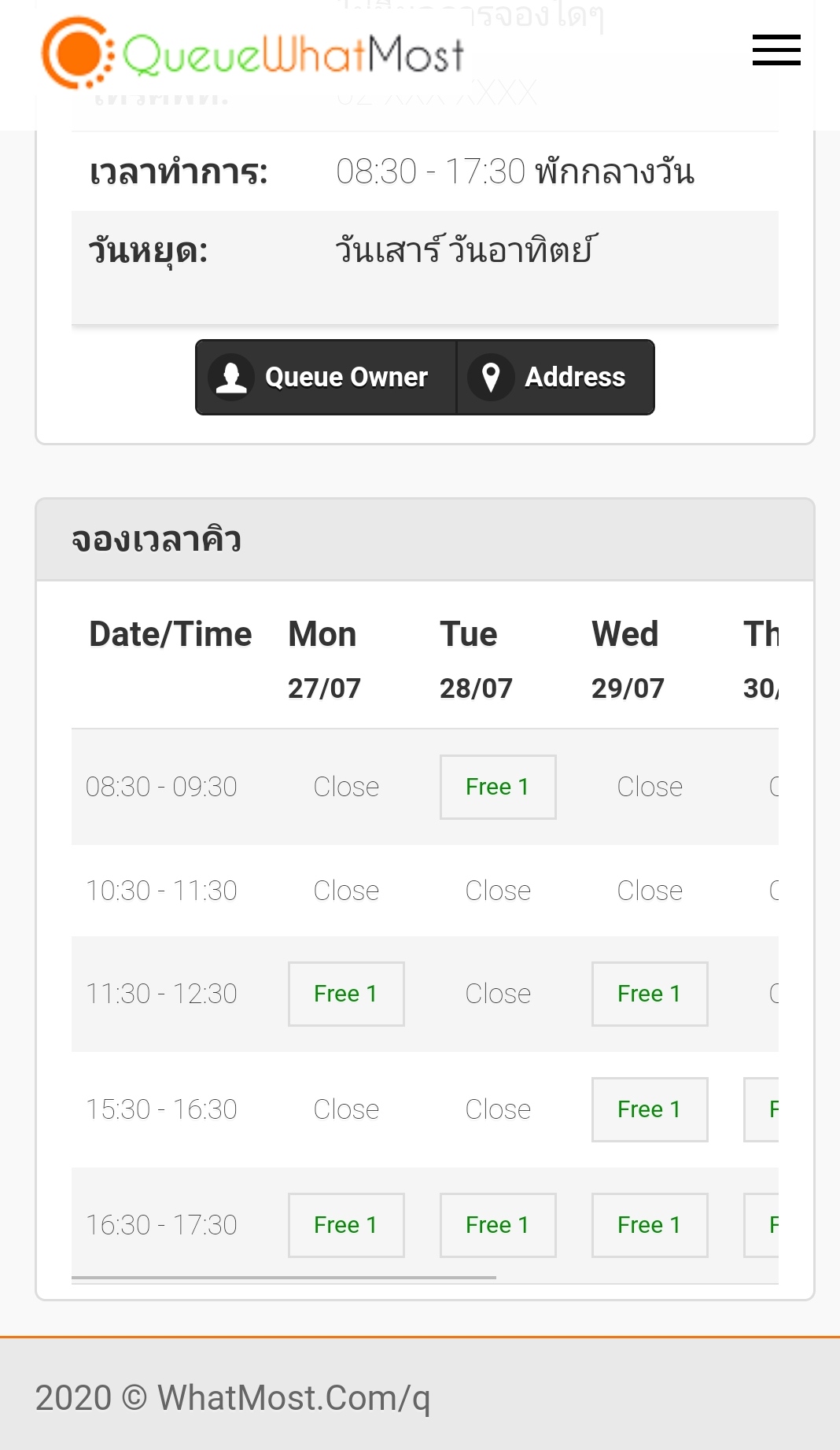 WhatMost.com เราได้ทำระบบจองคิวล่วงหน้ามาให้ลองใช้กัน ด้วยยุคปัจจุบันมีระบบจองคิวออกมาเยอะแยะมากมาย แต่ที่เด่นๆมีคนนิยมใช้กันเยอะๆก็มีประมาณหนึ่งหรือสองเท่านั้น และเป็นระบบจองคิวแบบร้านค้า คิวใช้บริการแบบหน้าร้าน หน้าสถานที่ให้บริการ ดังนั้นเราจึงขอทำเป็นระบบจองคิวล่วงหน้า