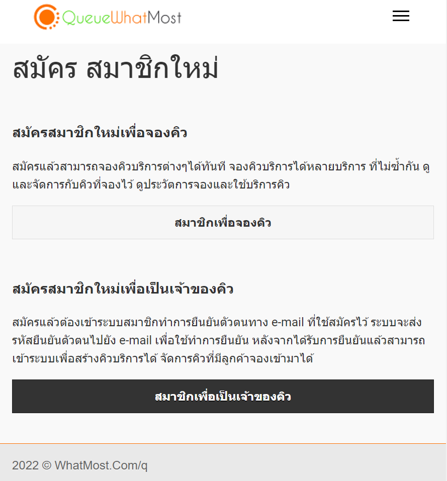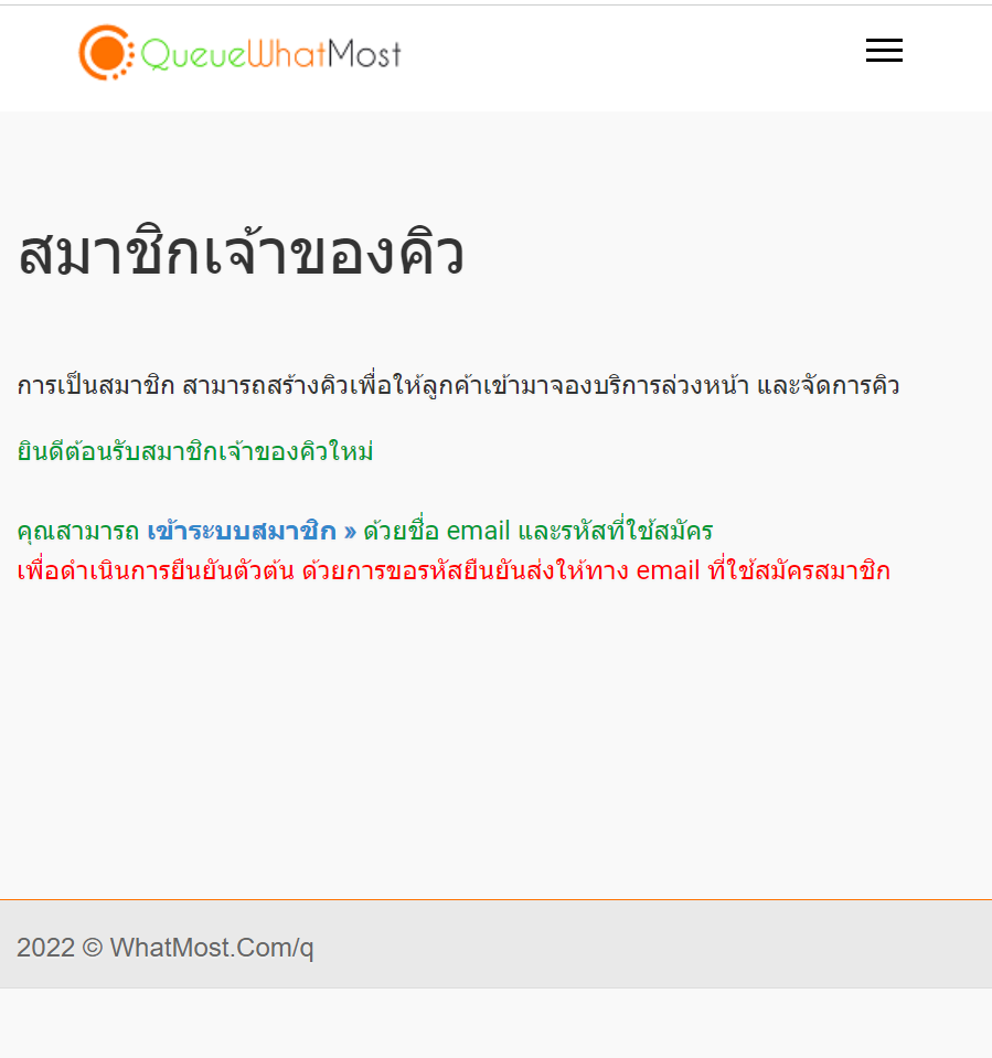 มาสร้างคิวให้ ลูกค้า ลูกศิษย์ ผู้ใช้บริการ จองกันได้ที่ q.whatmost.com โดยเริ่มจากการสมัครเป็นสมาชิกกันก่อนดังขั้นตอนต่อไปนี้