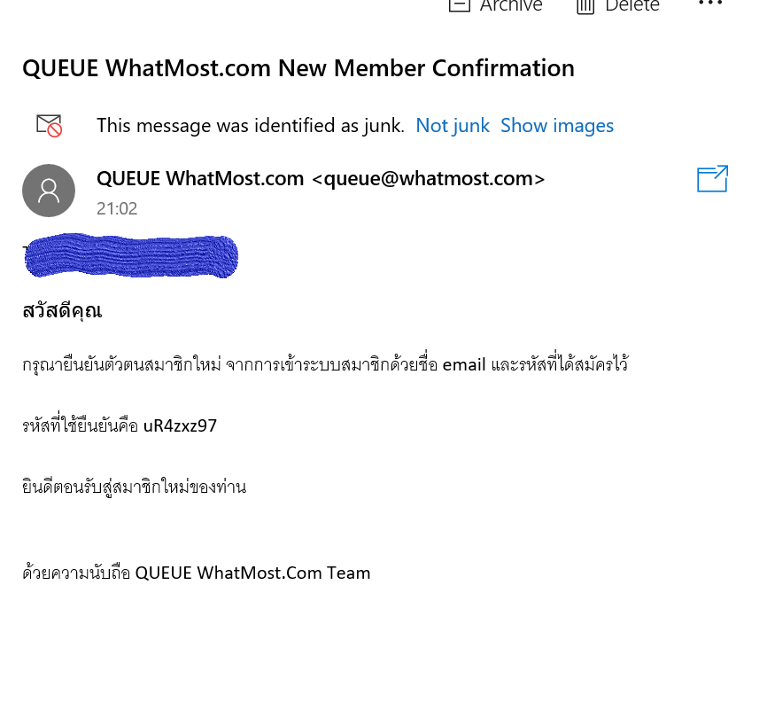 หน้าตา email ที่ส่งรหัสยืนยันให้