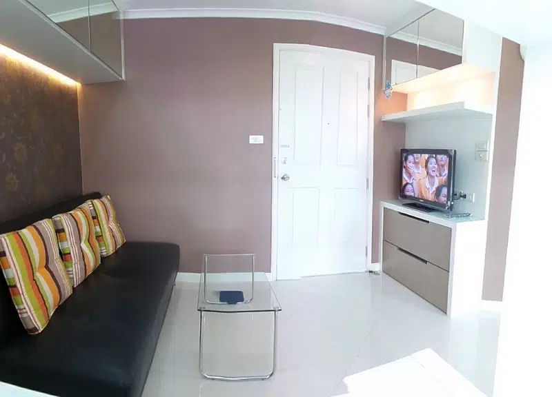 ห้องเป็นห้อง Built-In ทั้งห้อง สไตล์ห้อง Studio (ห้องนอน , ห้องนั่งเล่น , ห้องน้ำ , เคาน์เตอร์ครัว) ปูพื้นด้วยแกรนิโตสีขาว พร้อมเครื่องใช้ไฟฟ้า และ เฟอร์นิเจอร์อย่างครบครัน
